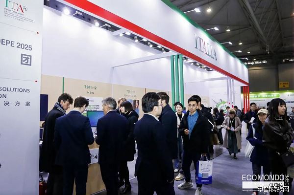 本屆展會亮點之一是全國各級專精特新和小巨人企業的大力參與。這些“隱形冠軍”展示了高效污水處理、固廢資源化、生態修復等領域的創新方案和尖端技術。固廢領域企業的積極參與,也展現了"雙碳"戰略下健全廢棄物循環利用體系,提升再生利用規模化和精細化水平的強勁勢頭。國際參與度較2024年增長14%,共有24家海外展商亮相,其中由意大利對外貿易委員會(ITA)組織的意大利國家館尤為矚目,展團14家意大利企業展示了綠色科技與循環經濟領域的尖端解決方案。這樣的深度互動激發了新的國際合作與知識共享,進一步加強了ECOMONDO CHINA在全球協作中的門戶地位。