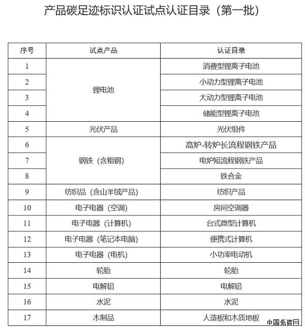 工業(yè)和信息化部辦公廳關(guān)于印發(fā)《產(chǎn)品碳足跡標(biāo)識認(rèn)證試點認(rèn)證目錄(第一批)》的通知